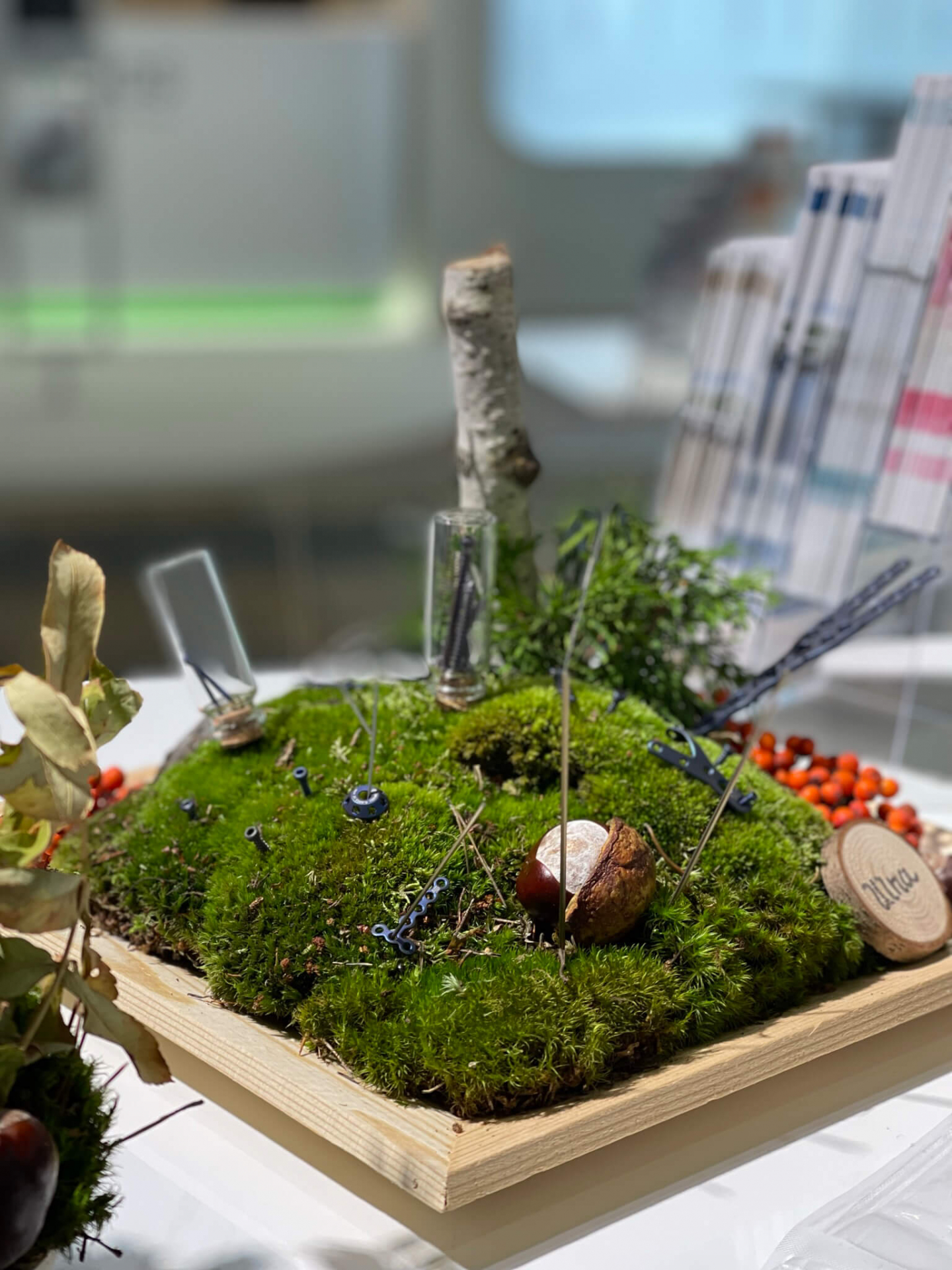 Ziel war es Lösungen zu finden, um ein ästhetisch und funktional stimmiges Erscheinungsbild mit einer modernen hellen Anmutung, mit dem Thema GANZHEITLICH | UMWELTSCHONEND | NACHHALTIG und so ein unverwechselbares CI-konformes Auftreten auf dieser Messe und damit die Aufmerksamkeit der Messebesucher, ergänzt durch Hinterleuchtung auf sich zu ziehen.