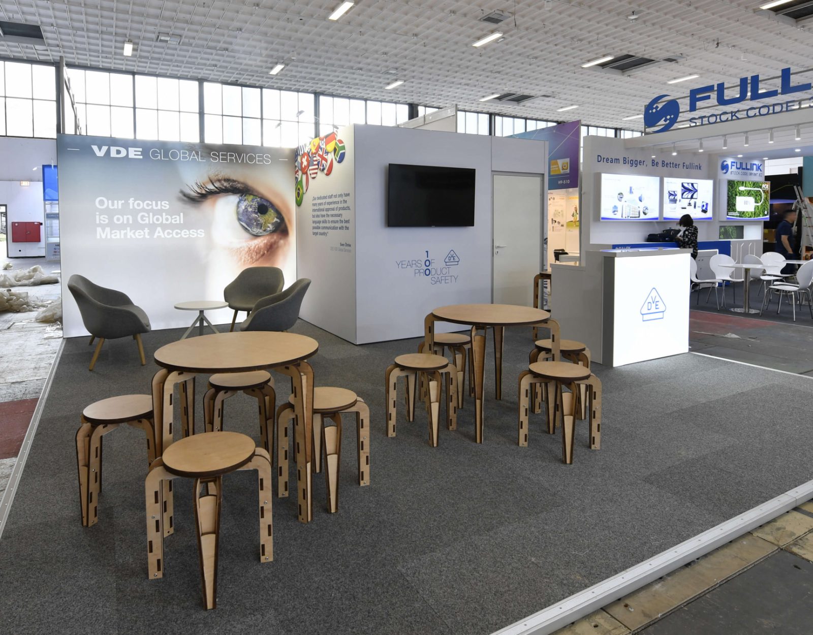 Die Standgrößen reichen von kompakten Präsentationsflächen bis zu groß angelegten Messeauftritten. Unsere Systeme sind mit gängigen Druckverfahren kompatibel und lassen sich flexibel erweitern oder anpassen. Die einzelnen Elemente sind wiederverwendbar und einfach integrierbar.