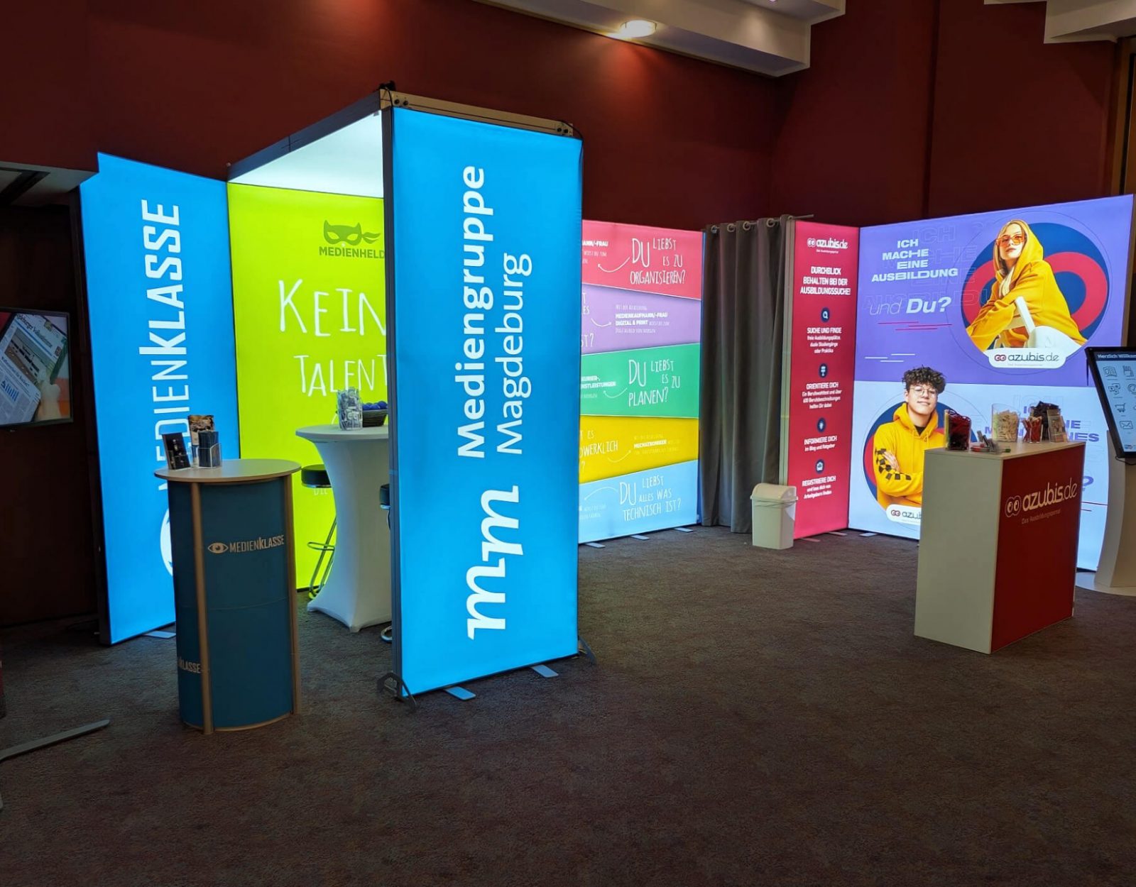Dank unseres innovativen Stecksystems können die Komponenten im Messebau schnell und ohne Werkzeug montiert und demontiert werden. Die vollständig vorgefertigten Aluminium-LED-Messewände lassen sich mit wenigen Handgriffen aufbauen und machen Ihren Messestand im Handumdrehen einsatzbereit. Unsere modularen Messebau-Systeme bieten vielseitige Einsatzmöglichkeiten, egal ob als LED-Wand, Raumteiler oder freistehendes Infopanel. Mit modernster LED-Technik, praktischen Erweiterungsoptionen und multifunktionalem Design können Sie Ihre Marke effektiv in Szene setzen.