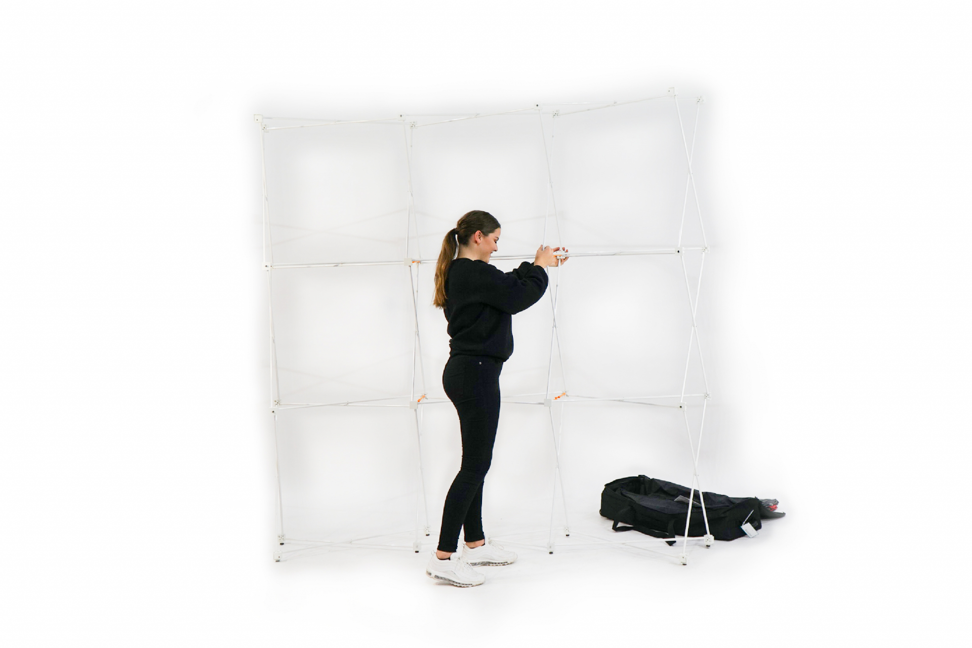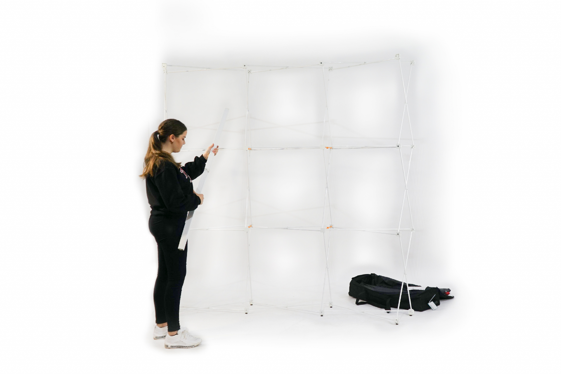 Dieses Faltdisplay ist ein echtes Leichtgewicht: Mit nur 7 Kilogramm ist es leichter als manches Handgepäck. Sie können es also jederzeit überall mit hinnehmen und haben es im Handumdrehen aufgebaut. Aufgrund des kompakten Packmaßes passt es in fast jeden PKW, ja, da es so leicht ist, können Sie es sogar in der Bahn transportieren. Durch spezielle Verbinder lassen sich mehrere Module miteinander kombinieren. So können Sie die unterschiedlichsten Größen zusammenstellen. Ganz nach Ihrem Bedarf. Innerhalb kürzester Zeit können Sie so repräsentative Messe- und Infostände errichten, Ihr Foyer bestücken oder auf dem Kongress Ihr Unternehmen angemessen repräsentieren.
