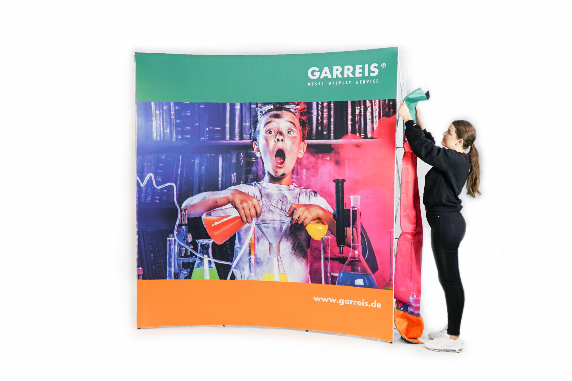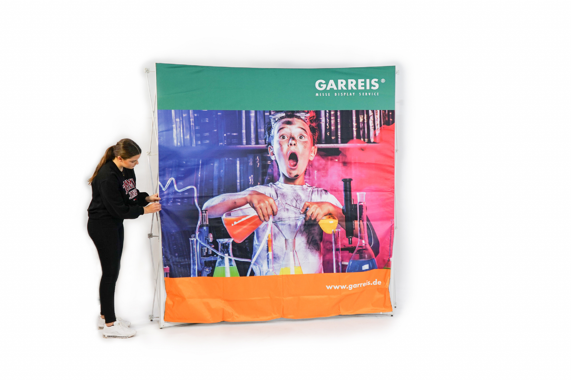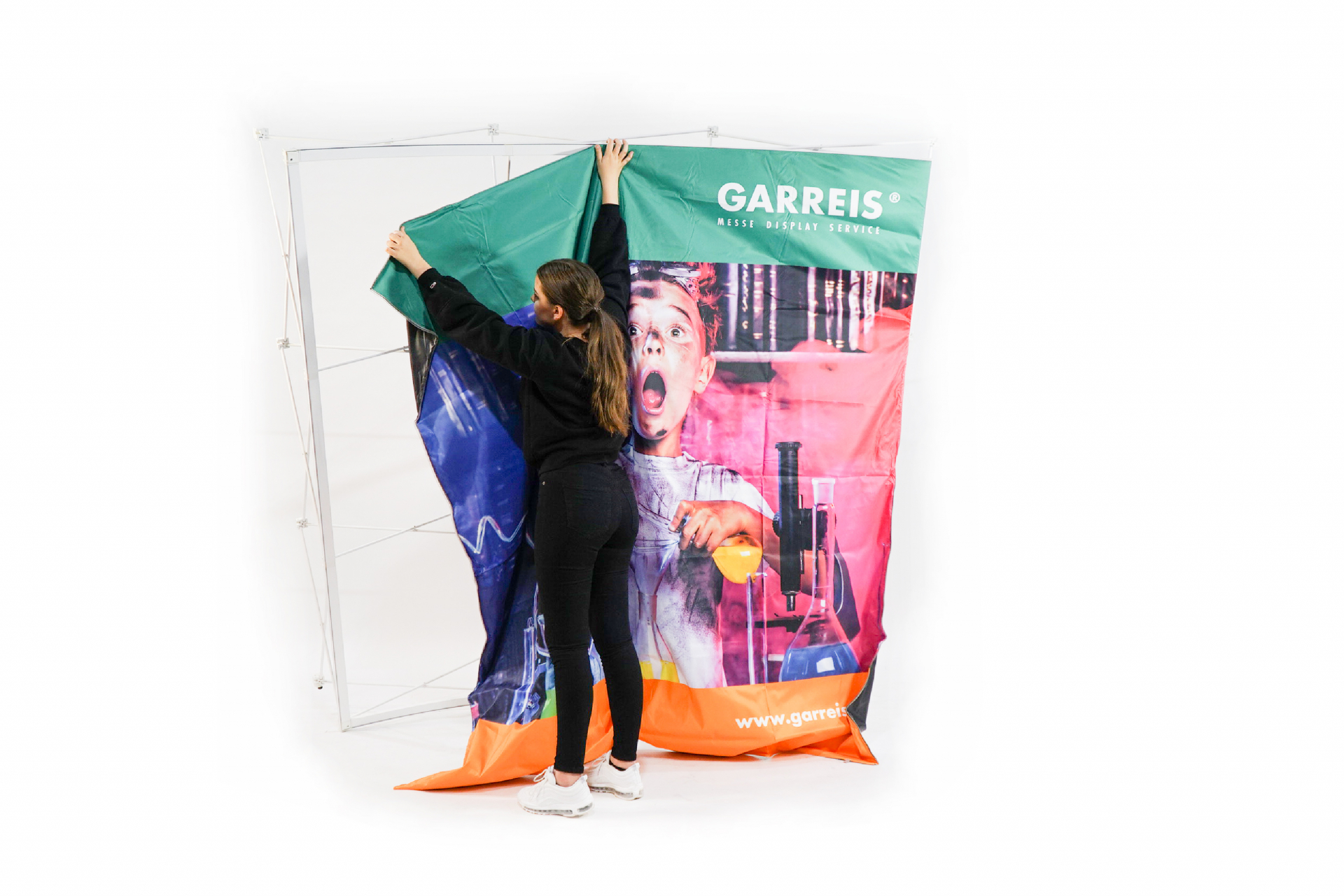 - Hinterleuchtetes Faltdisplay mit faltenfreier Stoffgrafik