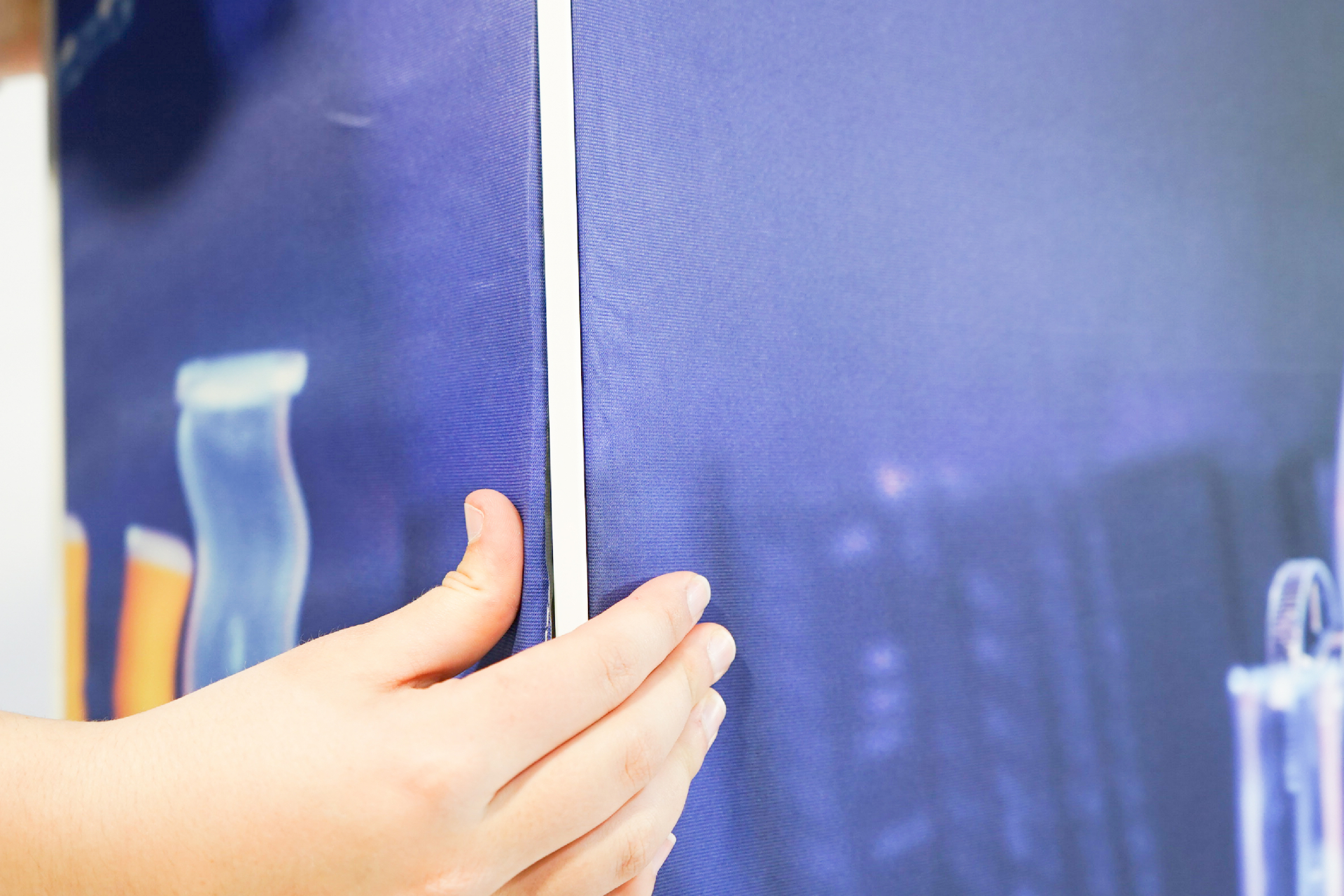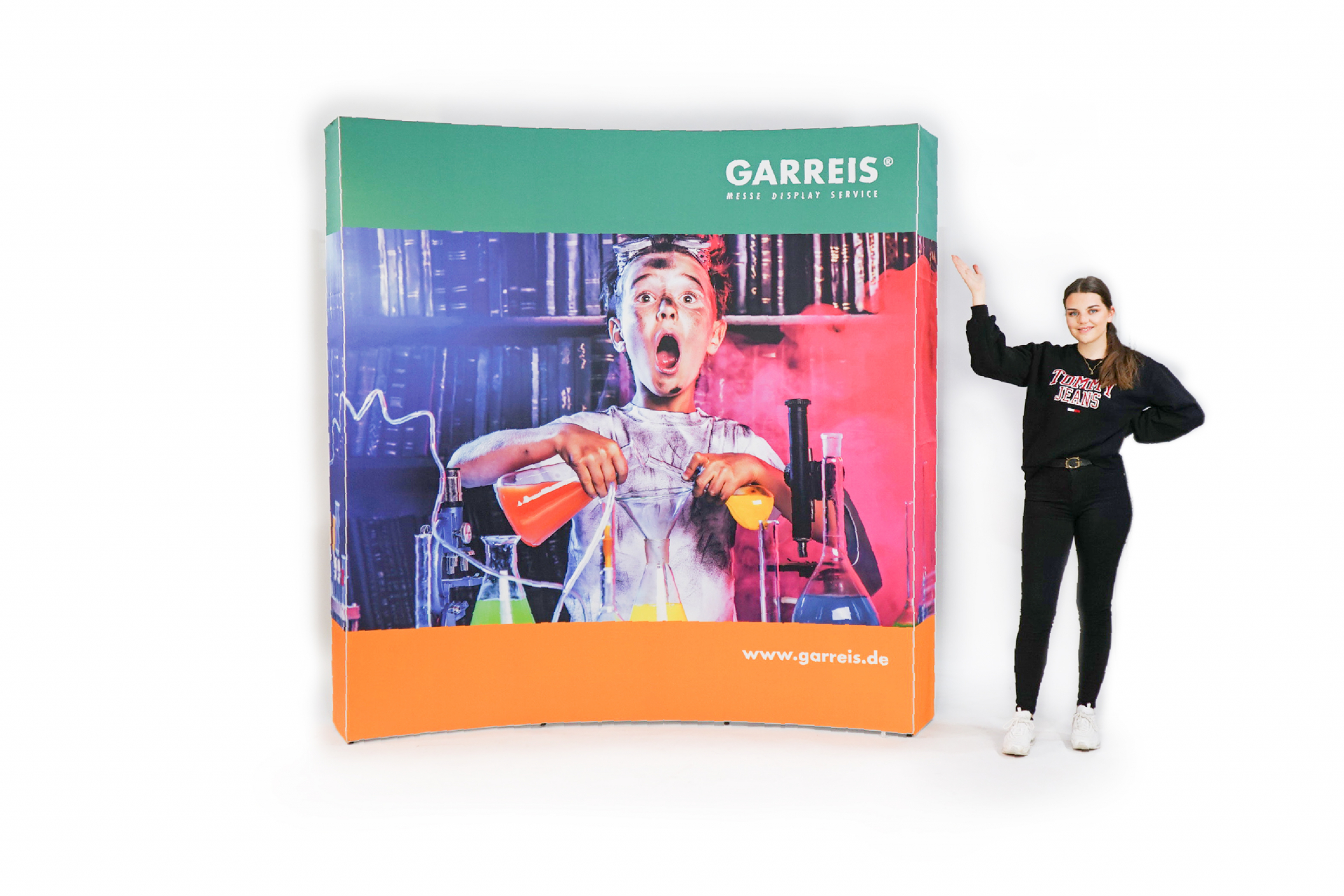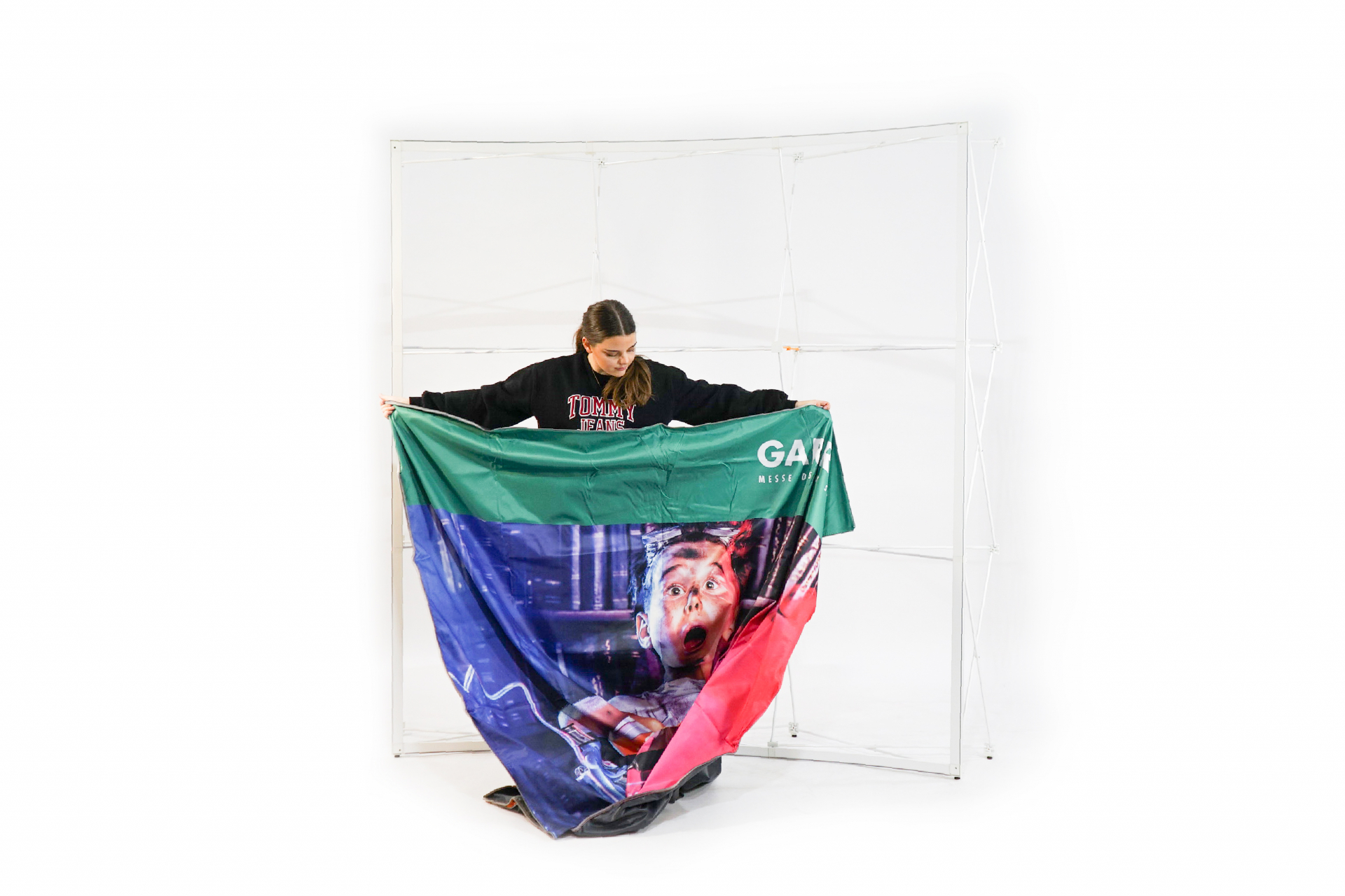 - Hinterleuchtetes Faltdisplay mit faltenfreier Stoffgrafik