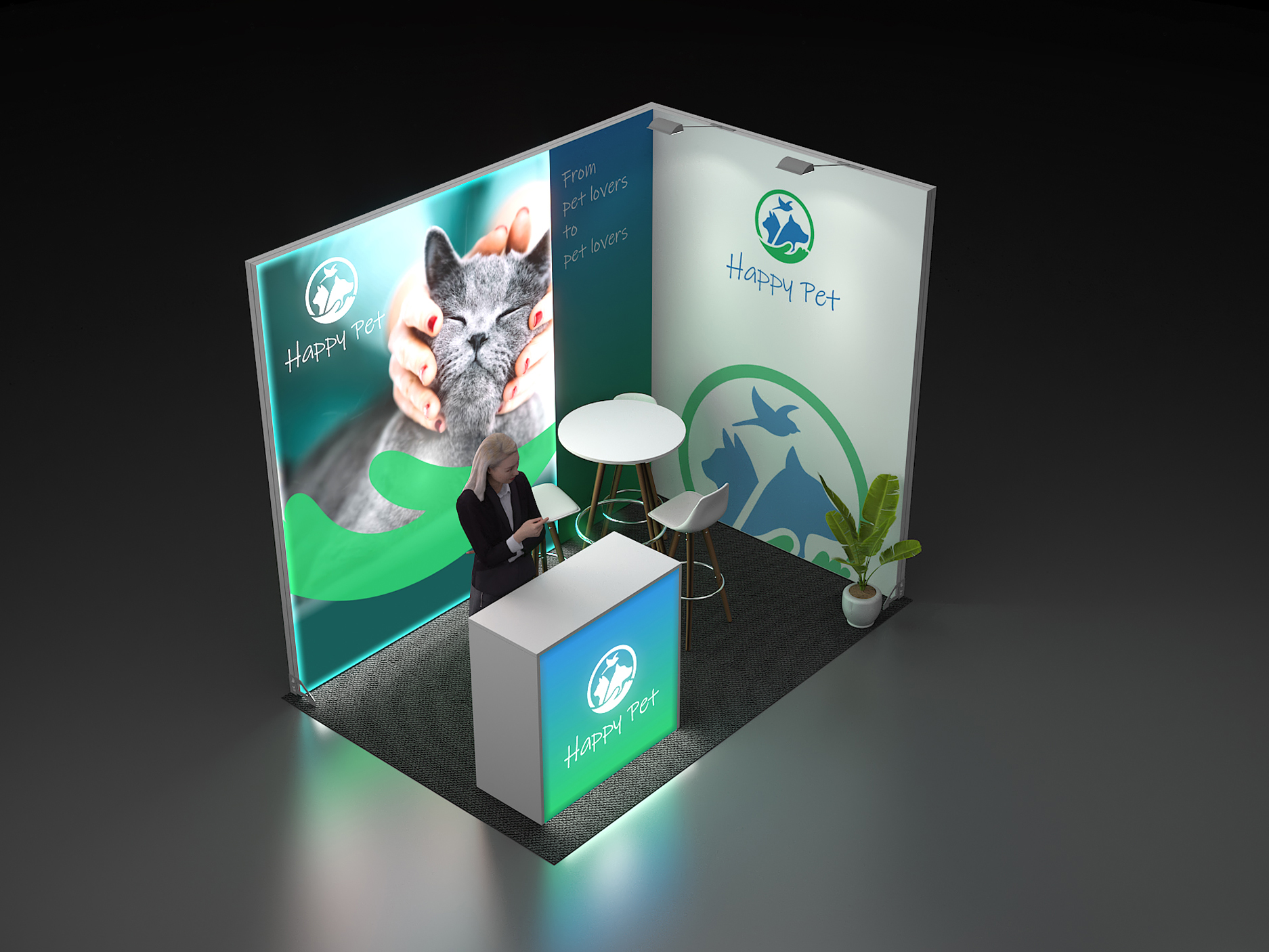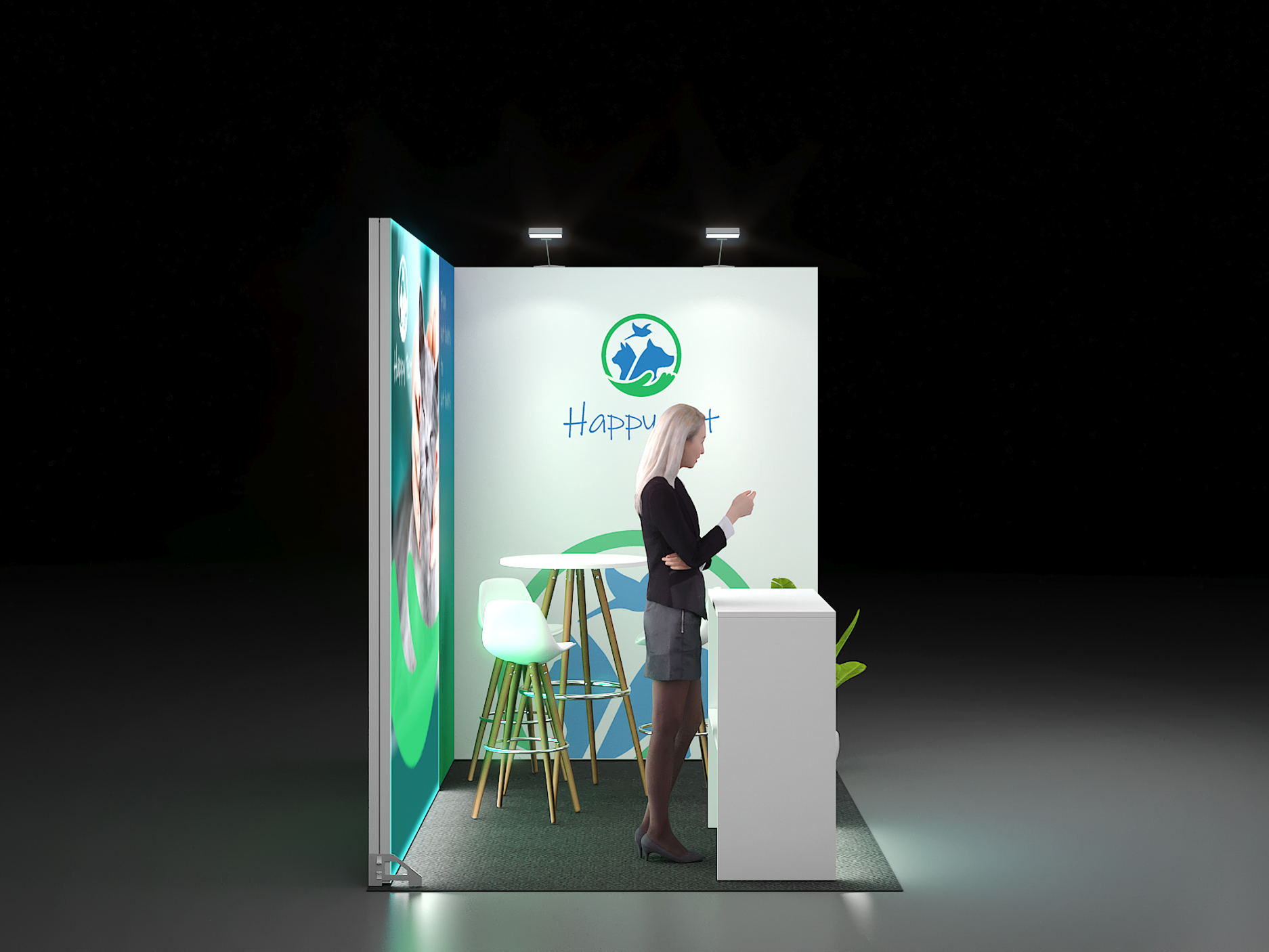 Mini LED Messestand mit LED Leuchtrahmen und Theke 3x2-02