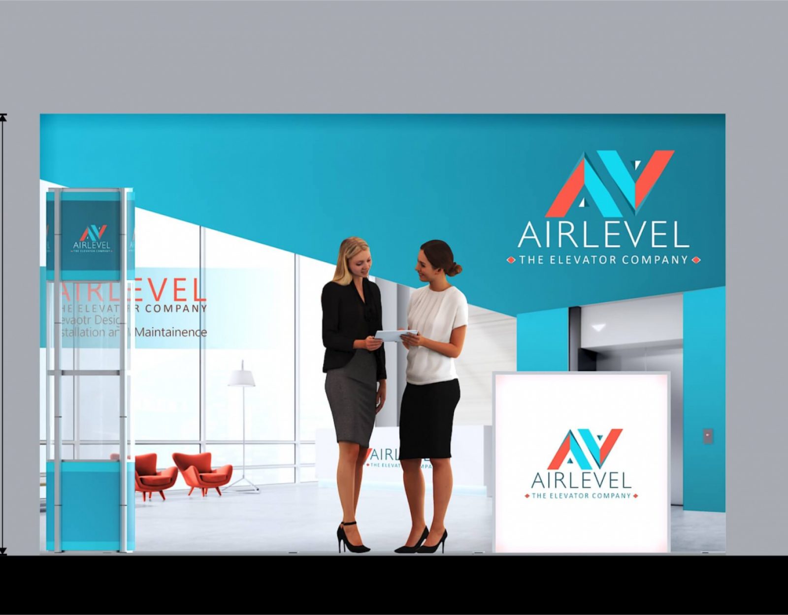 1x Messetheke isy®LED 8 B100 x H100 x T45 cm inkl. Druck