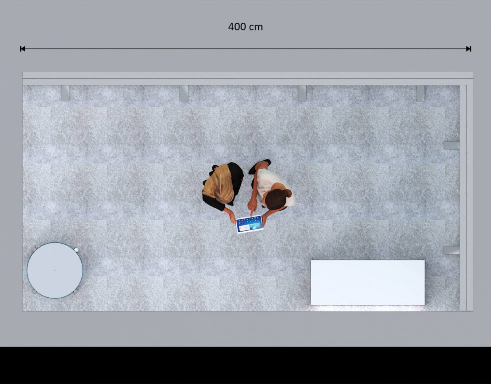 Standfläche gesamt: B400 x T212 x H250 cm