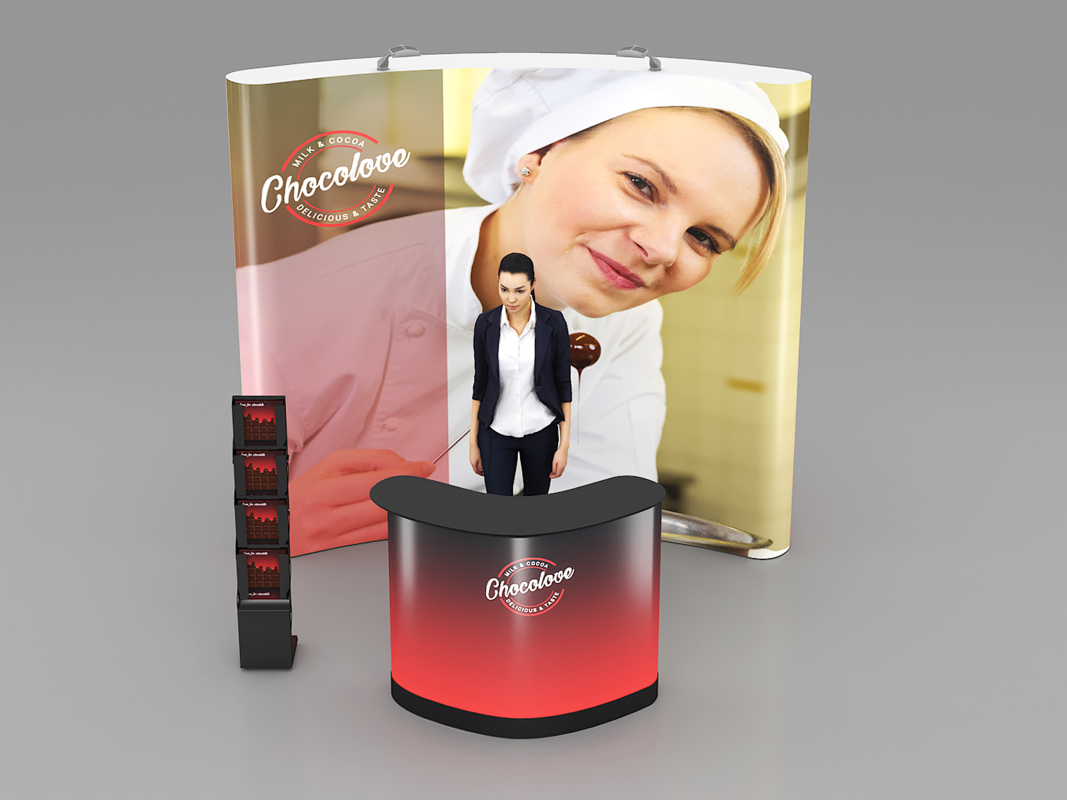 Promotionset 07 mit Premium-Faltdisplay mit Magnetbahnen und Countercase-Messetheke