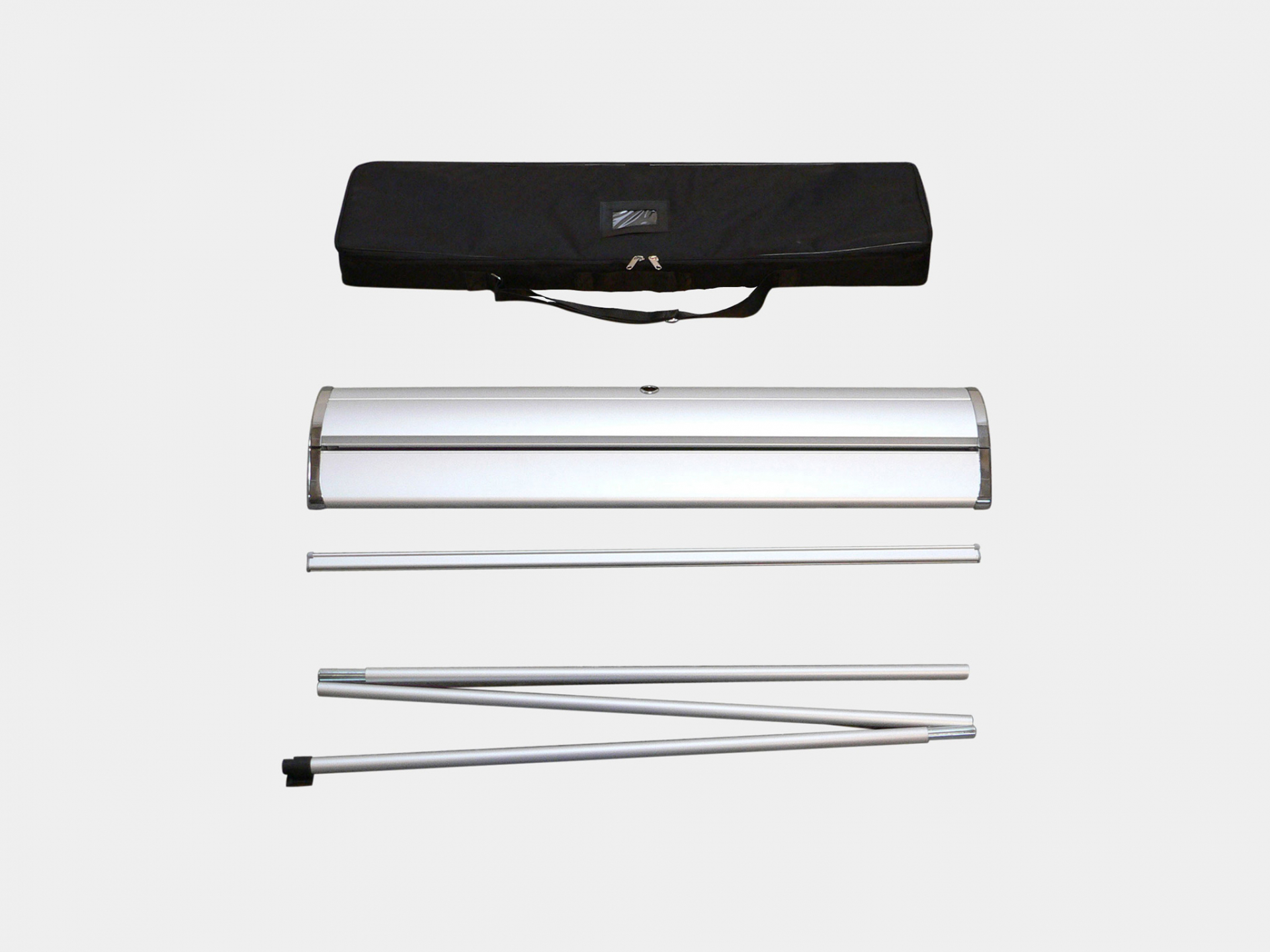 Nach dem Meeting ist das RollUp sekundenschnell abgebaut und in einer Aufbewahrungstasche platzsparend verstaut.