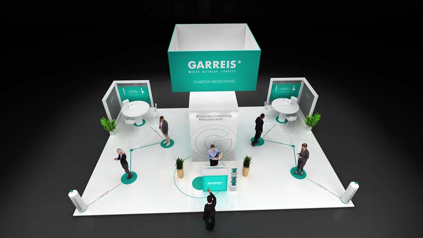 Schon vor zwei Wochen publizierten wir als erster Messebauer in Deutschland unsere Entwürfe für ein Messestand-Konzept welches maximale Sicherheit für Besucher und Standbesatzung bietet: der „1,5 Meter Messesstand“. Dabei ist wichtig, dass die Personen auf dem Stand nicht nur objektiv sicher sind, sondern sich auch subjektiv sicher fühlen.